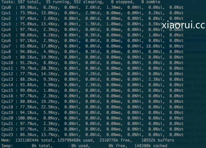我们可以发现出现了两种现象,CPU跑的满,内存占用很厉害。 解决了memory leak后,情况一切好转。