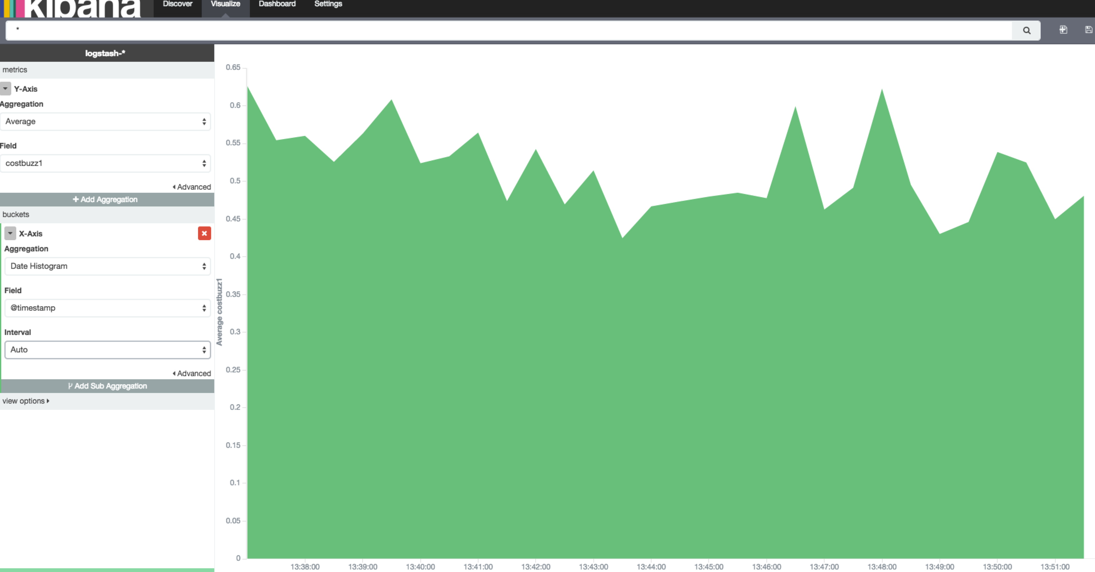 大家都知道kibana是个前端的应用,在4里面加强了不少语句,比如聚合….   有了metric的功能,我们就可以用graphite、influxdb那样,做数据的聚合,可以得到count max min average sum的功能….
