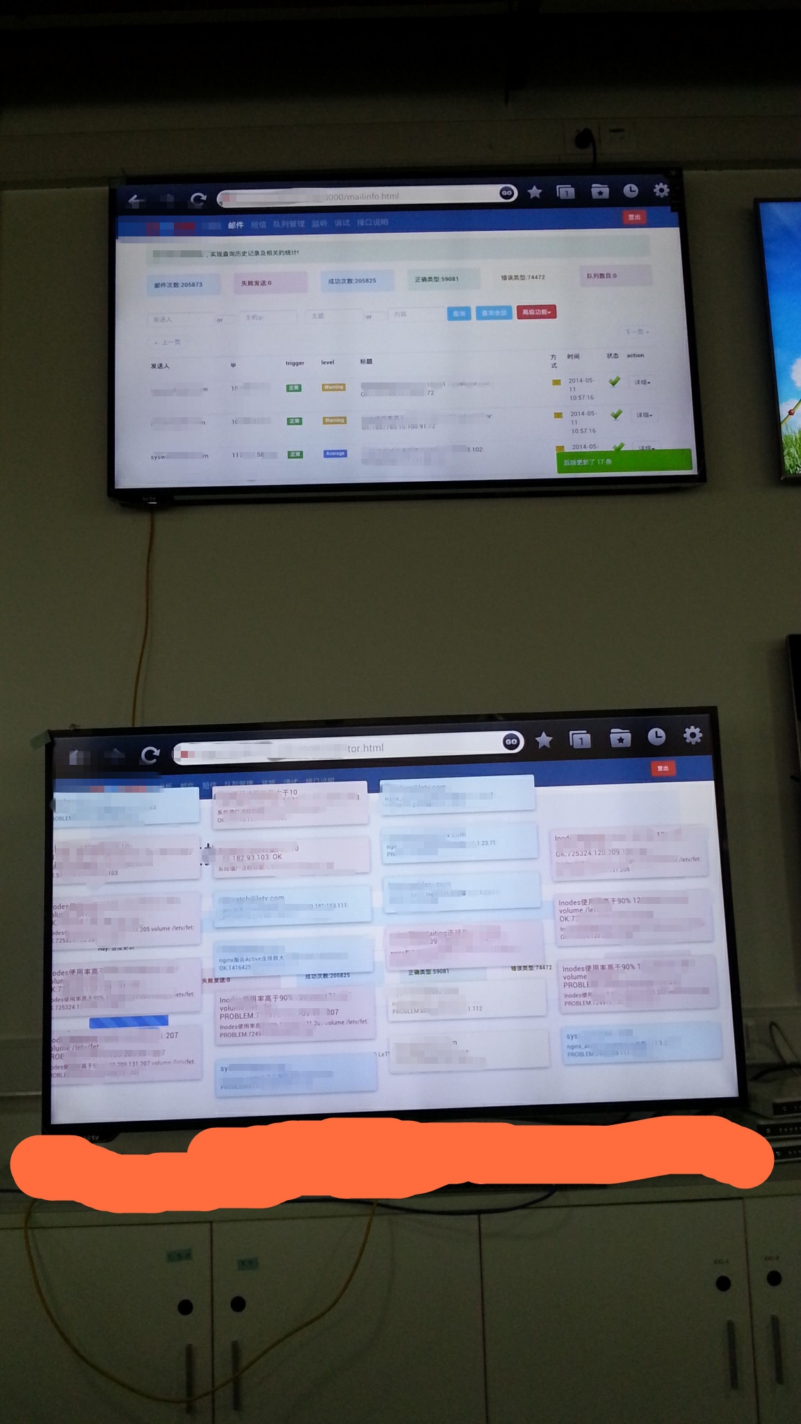 这是大屏幕监控,现在做的有点粗糙,对于各种报警的级别还没有做细化,这报警平台页面后期可放在公司墙上的大屏幕,实时查看各种动向,对于重要的业务,会有声音的提醒。简单点的有 叮叮的声音,如果你的声音够磁性,可自己录音。 比如,xxx的nginx挂了,你妹的赶紧处理呀。