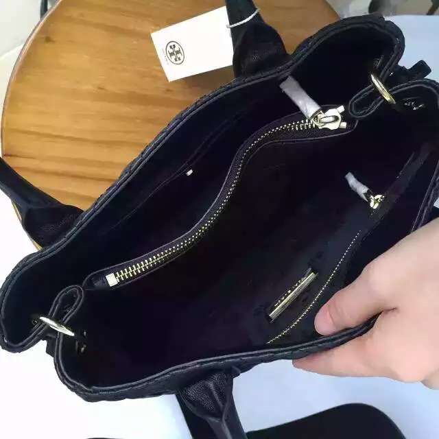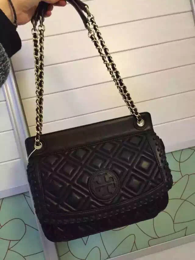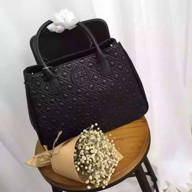 1120元  tory burch早秋系列# MARION QUITED TOTE 黑色 酒红色 现货 羊皮 31*23*11 特别特别轻 手感好