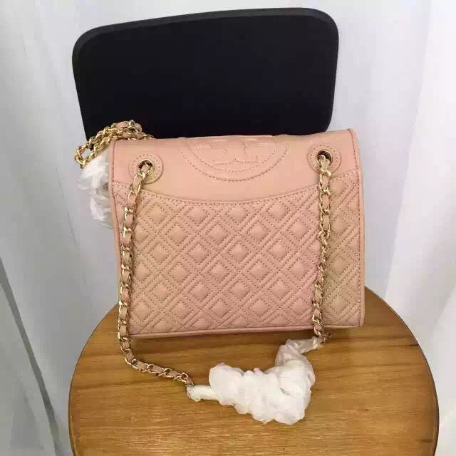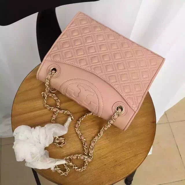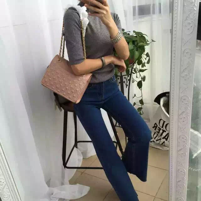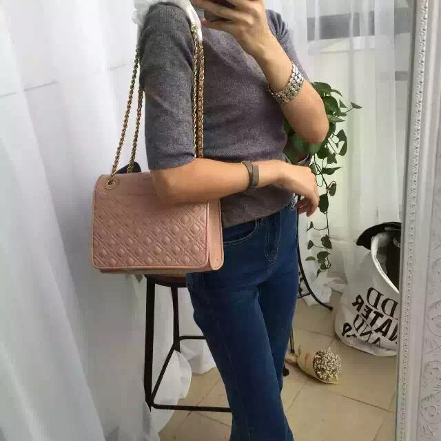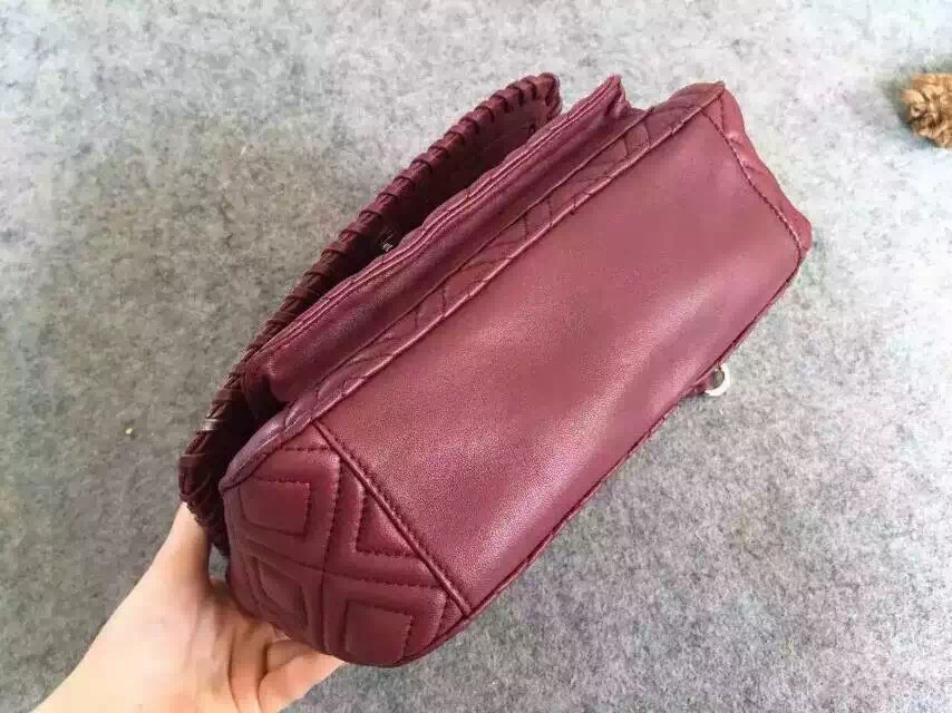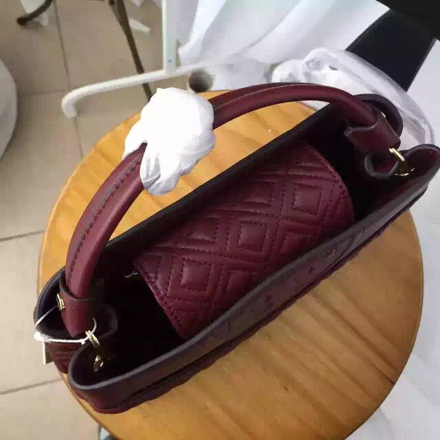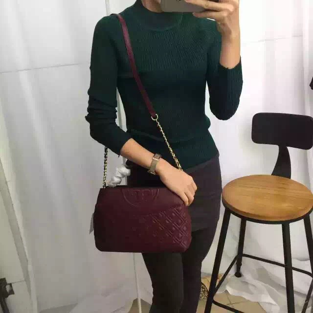 1050元 toryburch 弗拉明戈羊皮菱格纹复古手提袋 简约中不失柔美的感受 25*18*9 酒红色现货