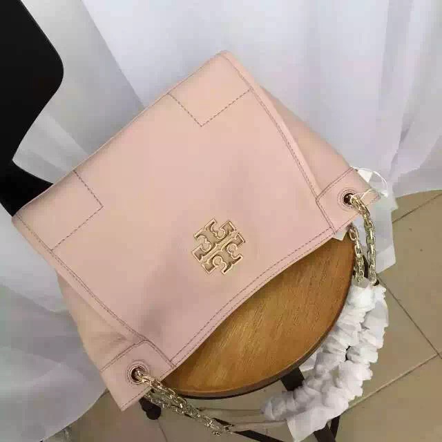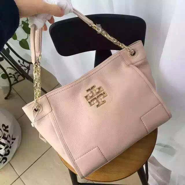 1150元  新款到货 TB britten small slouchy tote 进口摔纹牛皮 购物袋 29.5*24*12 浅粉色 现货