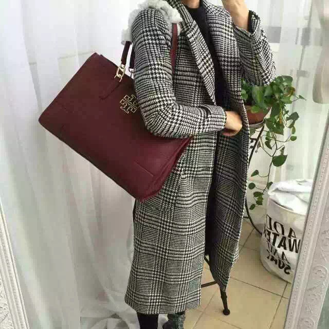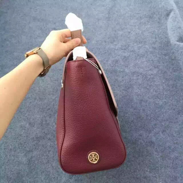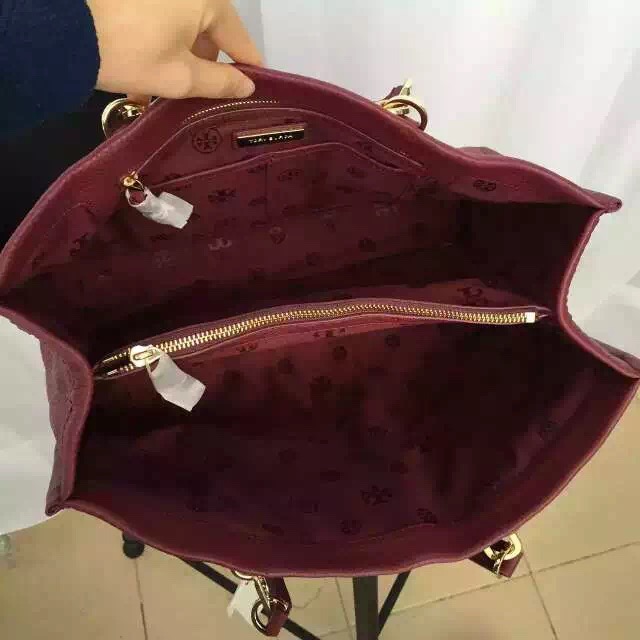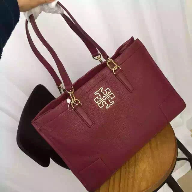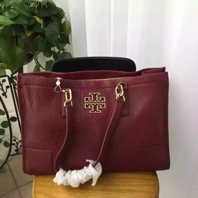 1180元 新款到货 tory burch britten tote 酒红色 现货 进口摔纹牛皮 特别适合秋冬 40*27*15