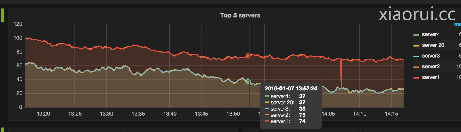 先说下kibana方面的事,kibana往往在展现一条数据的时候效果是完美的,尤其是kibana4那种清淡的绿色让人心旷神怡。 但很多时候我们要做多维度数据图表展现, 这地方kibna貌似没有做图表样式的优化。当很多条数据拥挤在一起时,很难区分出每个点的数值,换句话说很不直观。 另外kibana更加适合日志类型的展现, 虽然他也可以kv结构,但配置起来有些麻烦.