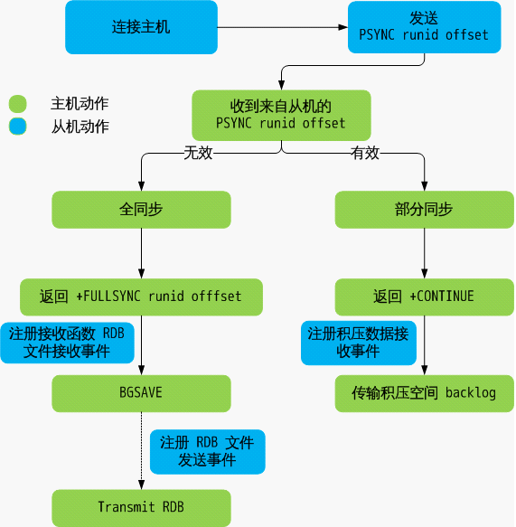 当我们redis slave客户端连接redis master的时候,master会判断slave是否为第一次同步. redis master后面不单单是靠IP及PORT识别用户,更主要的是通过slave提交的runid标志来识别客户端。