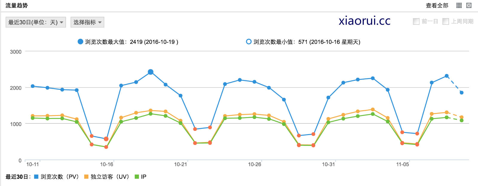 周一到周五的流量一般在 2200以上,周六周日的流量在1000pv左右 .