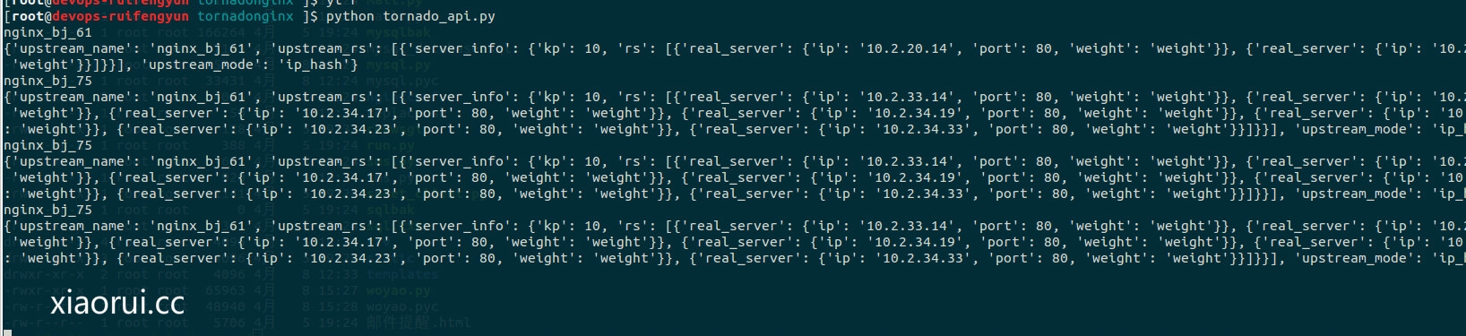 通过tornado的api 去做get请求,返回的不同主机的 nginx upstream的操作块配置。