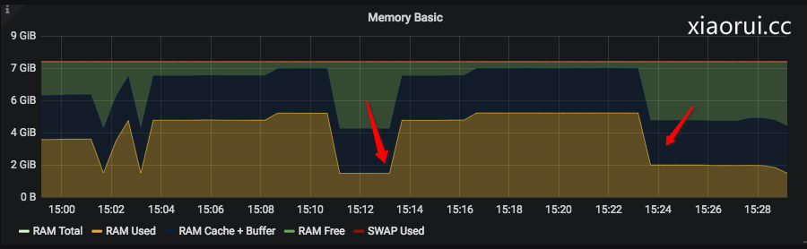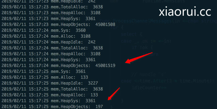 我们可以在golang程序里打印输出runtime.MemStats数据。经过测试,在差不多3分钟后,golang的heapObjects数减少了,heapObjects减少意味着我们上面说的理论是对的。