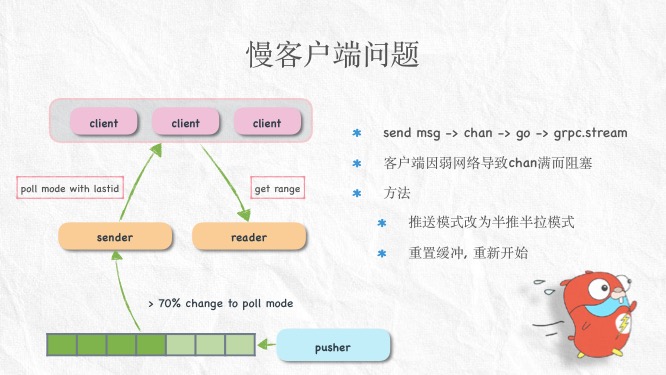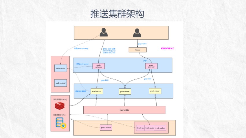 关于分享的ppt放到github了,有兴趣的可以看看。 https://github.com/rfyiamcool/share_ppt/blob/master/push_cluster.pdf