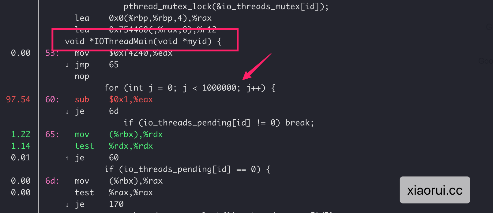io thread主函数每次进行100w次忙轮询判断是否有任务,有任务处理触发读或写,io线程在干完任务后会清理链表并重置io_threads_pending状态。如果无任务,那么就对io_threads_mutex[id]频繁的尝试加锁、放锁的操作,直到主线程触发stopThreadedIOIfNeeded进行stopThreadedIO。这里的stop不是让其退出,只是锁定互斥而已。