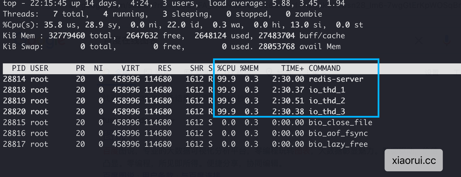 开启8个io thread线程的效果。8个线程把8个cpu core负载跑的差不多了,但qps却不升反降。