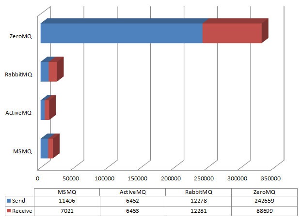 对于rabbitmq zeromq,我自己虽然没有专门的测试,但是实际应用中都有应用的。 zeromq的速度不用质疑,确实很快很快,但是他不做数据的存储持久化和可用性,要是client没有开启的话,他照样会把信息pub出去,不管你存不存在。但是rabbitmq就考虑了很多,看下图大家就知道了。