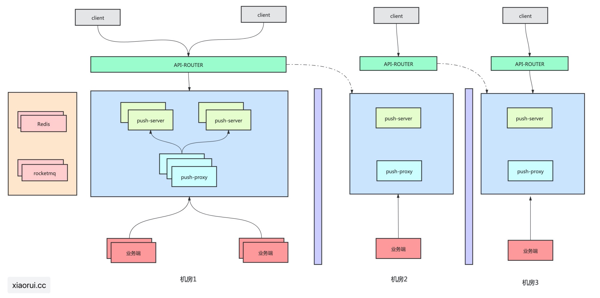 下图是我司长连接消息推送系统的简单架构图,出问题就是处在下游的消息生产方业务端。